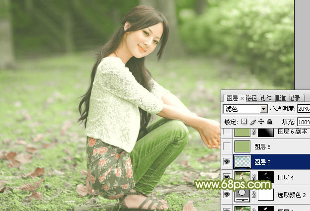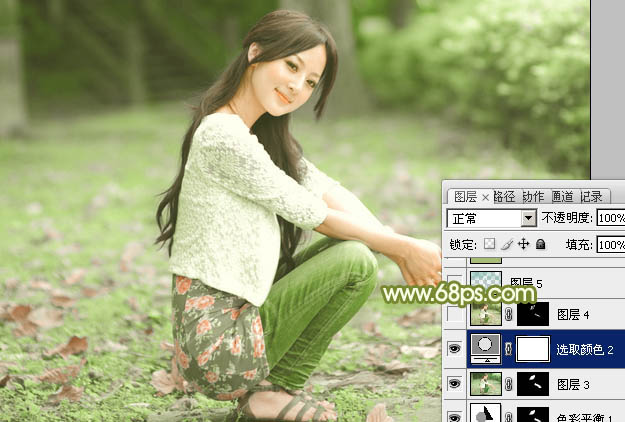 Photoshop给外景美女加上柔美的古典淡绿色(5)