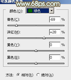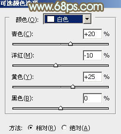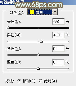 2、创建可选颜色调整图层,对黄、绿、白、中性、黑进行调整,参数设置如图2 - 6,效果如图7。这一步给图片增加黄褐色。
