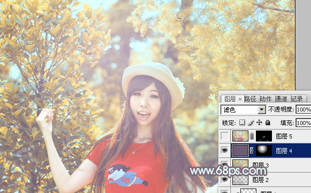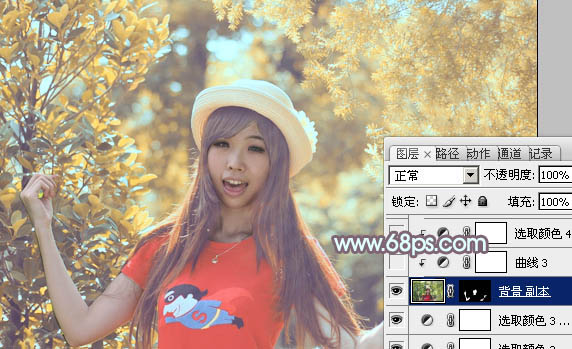 Photoshop打造流行的橙黄色树林人物图片(7)