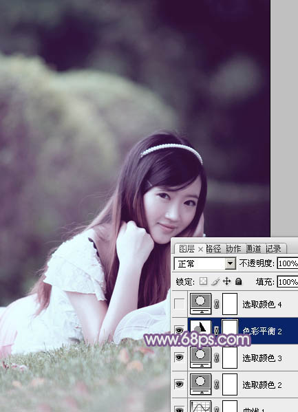 Photoshop给草地上的美女加上唯美的中性紫色(5)