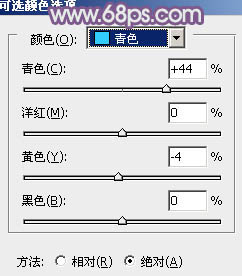 8、创建可选颜色调整图层,对红、黄、青进行调整,参数设置如图24 - 26,效果如图27。这一步微调人物肤色。