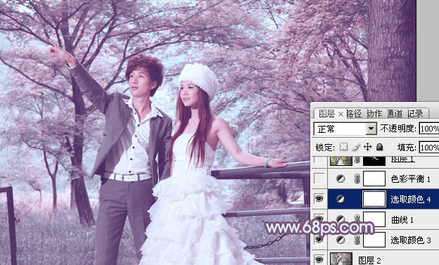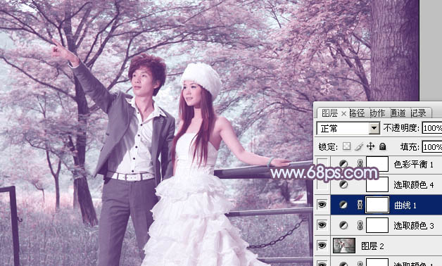 Photoshop给树林婚片加上唯美的蓝紫色(4)