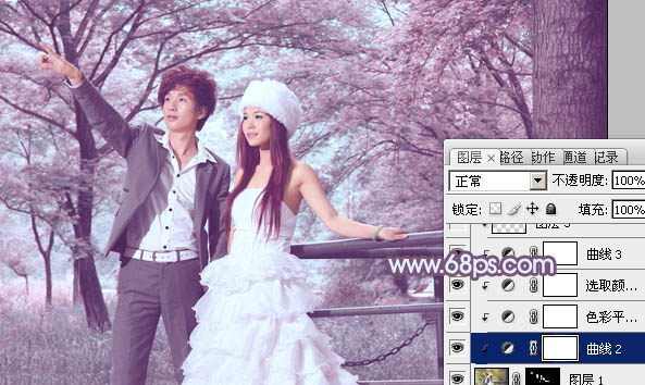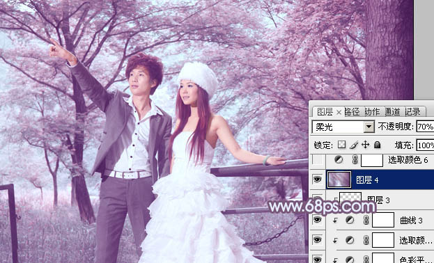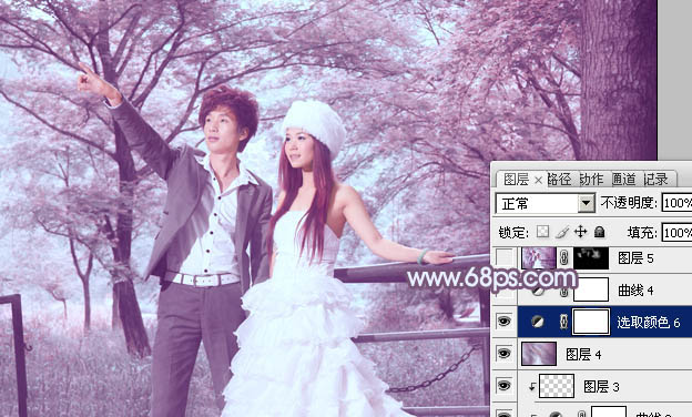 Photoshop给树林婚片加上唯美的蓝紫色(6)