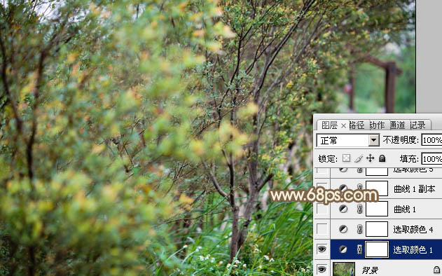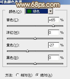 1、打开素材图片,创建可选颜色调整图层,对黄,绿进行调整,参数设置如图1,2,效果如图3。这一步主要把黄绿色色差拉大,黄色转为橙黄色。