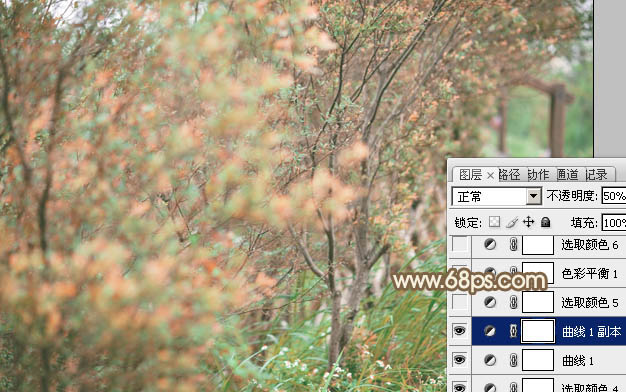 4、按Ctrl + J 把当前曲线调整图层复制一层,不透明度改为:50%,效果如下图。