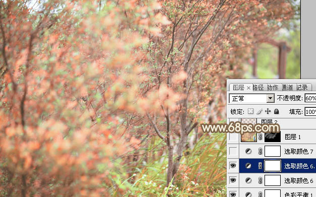 8、按Ctrl + J 把当前可选颜色调整图层复制一层,不透明度改为:60%,效果如下图。