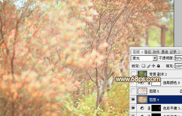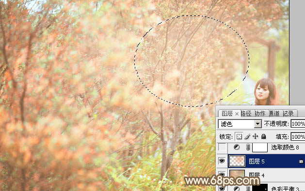 Photoshop给树丛中的美女加上小清新粉红色(8)