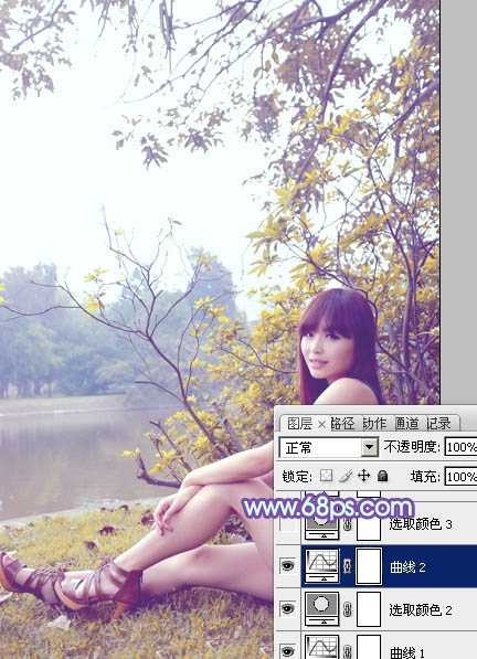 Photoshop给河边的美女加上小清新的橙黄色(4)