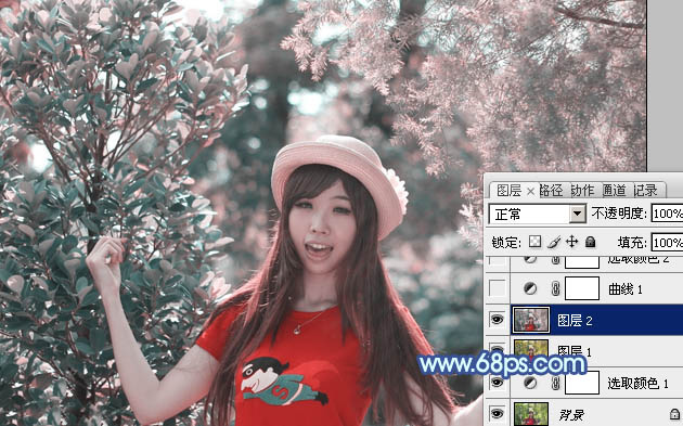 利用通道替换给树林中人物加上唯美的蓝红色(2)