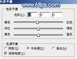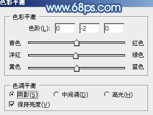 7、创建色彩平衡调整图层,对阴影、中间调、高光进行调整,参数设置如图20 - 22,效果如图23。这一步加强图片暗部及高光部分的颜色。