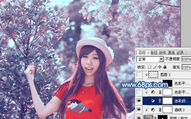 利用通道替换给树林中人物加上唯美的蓝红色(6)