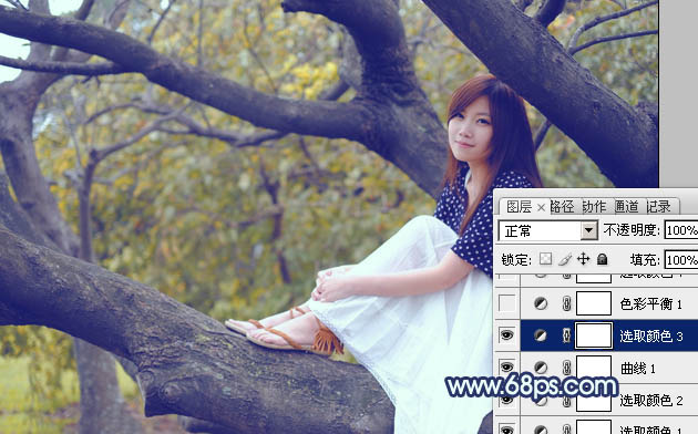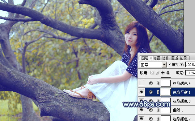 Photoshop给坐树枝上的美女加上小清新的蓝黄色(4)