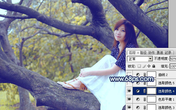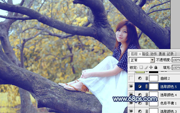 Photoshop给坐树枝上的美女加上小清新的蓝黄色(5)