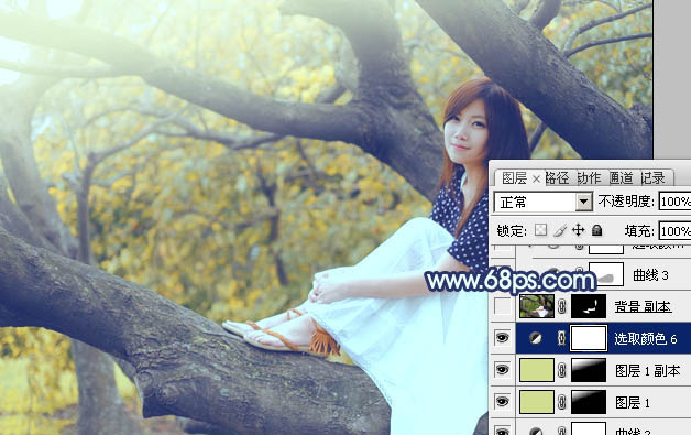 Photoshop给坐树枝上的美女加上小清新的蓝黄色(7)