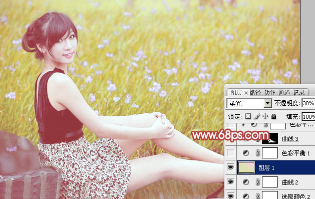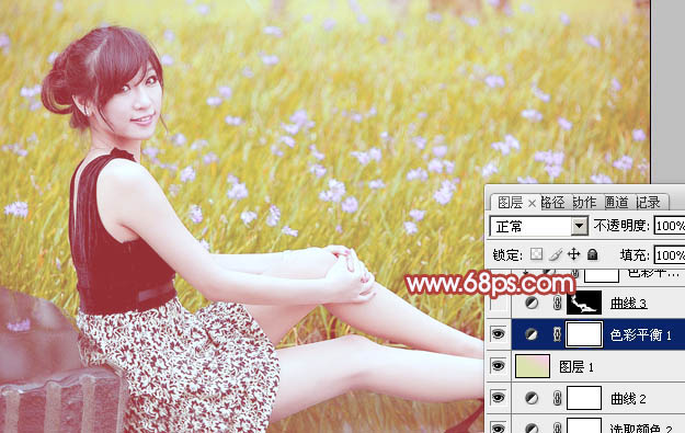 Photoshop给草地上的美女加上小清新的粉黄色(4)