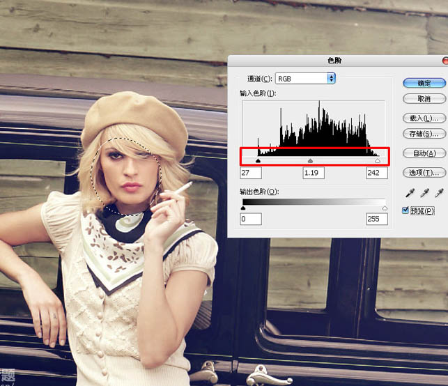 27、执行图像调整色阶命令,调整参数如图所示。