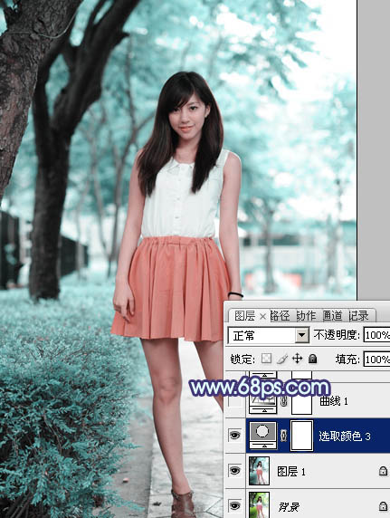 Photoshop给绿树边的美女加上甜美的淡调青蓝色(2)