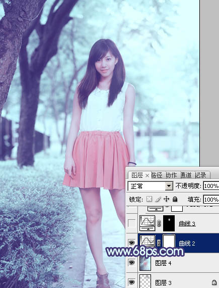 Photoshop给绿树边的美女加上甜美的淡调青蓝色(6)