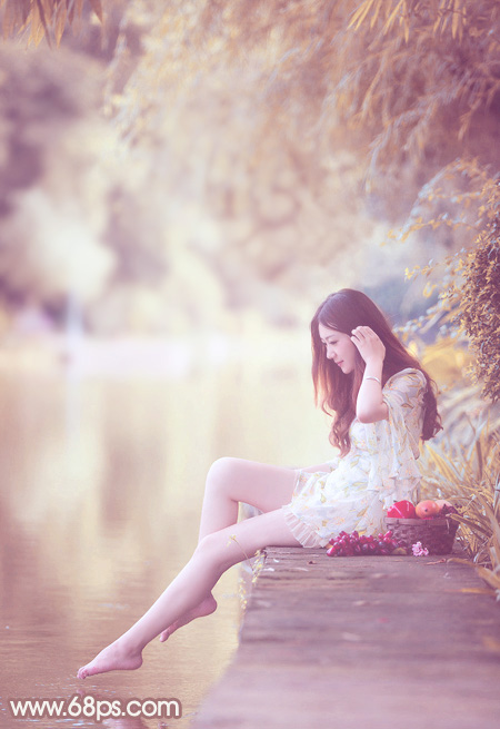 素材图片基本上以绿色为主,转为红褐色需要逐步来实现,先把图片主色转为暖色,并把整体调淡;然后给暗部增加一点红褐色,再微调一下中间调及高光颜色即可。