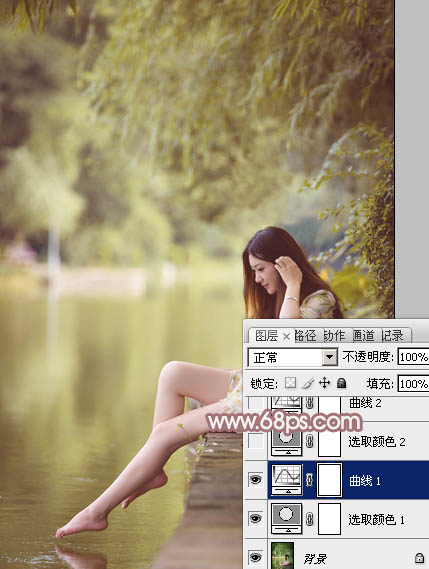 Photoshop给池塘边的美女加上唯美的红褐色(2)