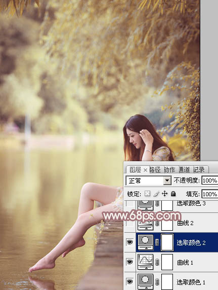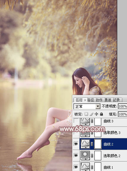Photoshop给池塘边的美女加上唯美的红褐色(3)