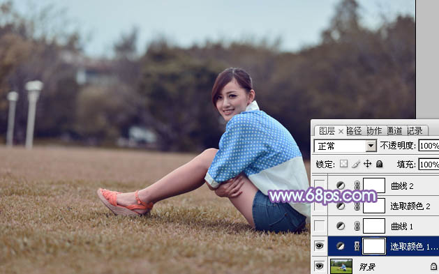 Photoshop给草地上的美女加上柔美的蓝色调(2)