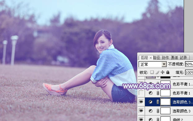 Photoshop给草地上的美女加上柔美的蓝色调(5)