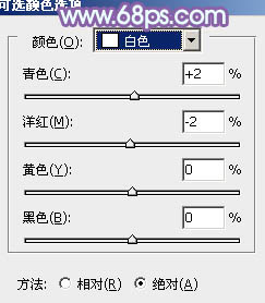 10、创建可选颜色调整图层,对蓝、洋红、白进行调整,参数设置如图30 - 32,效果如图33。这一步微调图片主色,并加强高光部分的颜色。