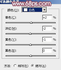 7、创建可选颜色调整图层,对黄、洋红、白进行调整,参数设置如图23 - 25,效果如图26。这一步主要增加图片中黄色亮度。