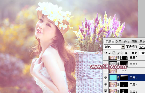 13、新建一个图层填充青色:#77EEED,混合模式改为“滤色”,按住Alt键添加图层蒙版,用白色画笔把顶部需要增加高光的部分擦出来,再适当降低图层不透明度,效果如下图。