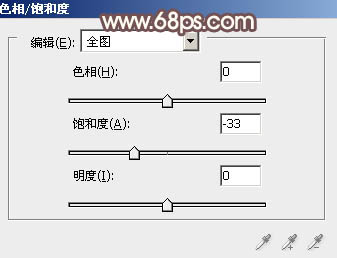2、创建色相/饱和度调整图层,适当降低全图饱和度,参数及效果如下图。这一步把图片主色转为稍微中性的颜色。