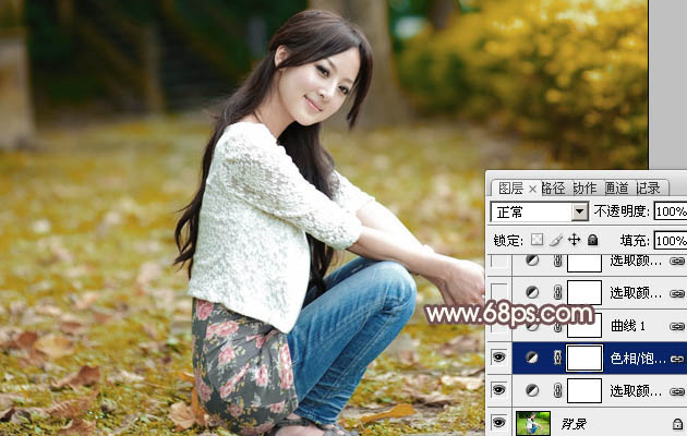 Photoshop给草地上的美女加上古典中性红褐色(2)