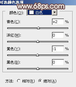 4、创建可选颜色调整图层,对红、黄、白、中性、黑进行调整,参数设置如图11 - 15,效果如图16。这一步把背景中的橙黄色调淡。