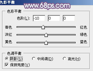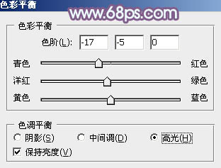 4、创建色彩平衡调整图层,对阴影,高光进行调整,参数设置如图12,13,效果如图14。这一步是减少图片中的红色,并给高光部分增加淡青色。