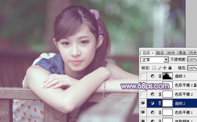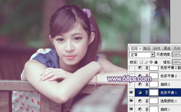 Photoshop给倚靠扶栏的美女加上甜美的紫绿色(4)