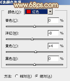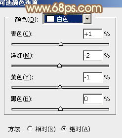 10、创建可选颜色调整图层,对红、黄、白、中性进行调整,参数设置如图30 - 33,效果如图34。这一步给图片增加橙黄色。