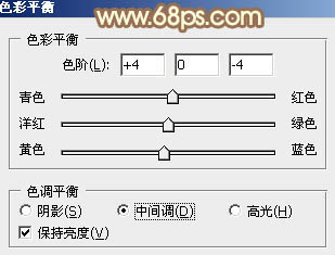 11、创建色彩平衡调整图层,对中间调,高光进行调整,参数设置如图35,36,效果如图37。这一步同样给图片增加暖色。