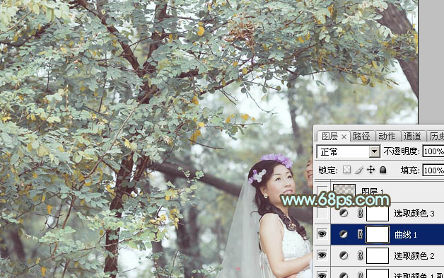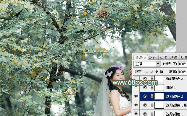 Photoshop给绿树下的情侣加上柔美的青绿色(3)