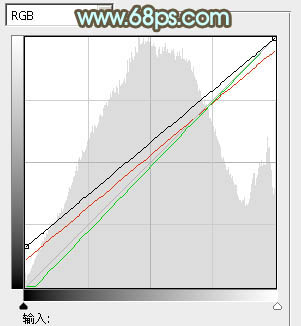 4、创建曲线调整图层,对RGB、红、绿通道进行调整,参数及效果如下图。这一步增加图片暗部亮度,并增加一点暖色。