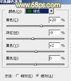 5、创建可选颜色调整图层,对红、黄、绿、青、蓝、洋红进行调整,参数设置如图19 - 24,效果如图25。这一步给中间调部分增加橙黄色,并把紫色花朵颜色调暗。