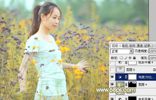 Photoshop给野花中的美女加上小清新的粉黄色(8)