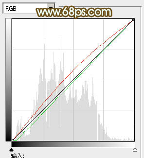 7、创建曲线调整图层,对红,绿通道进行调整,参数设置如图22,确定后把蒙版填充红色,用白色画笔把人物脸部及肤色部分擦出来,确定后再适当降低图层不透明度,效果如图23。这一步给人物肤色增加红色。