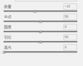 3、效果——剪裁后晕影——数量减少,加个暗角使画面视觉更加集中,参数如下图所示,然后点完成,接着在PS里面再进一步调整。
