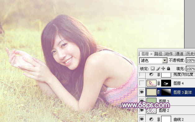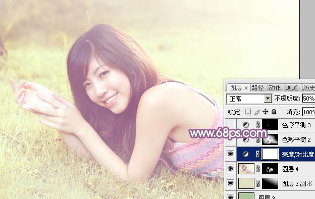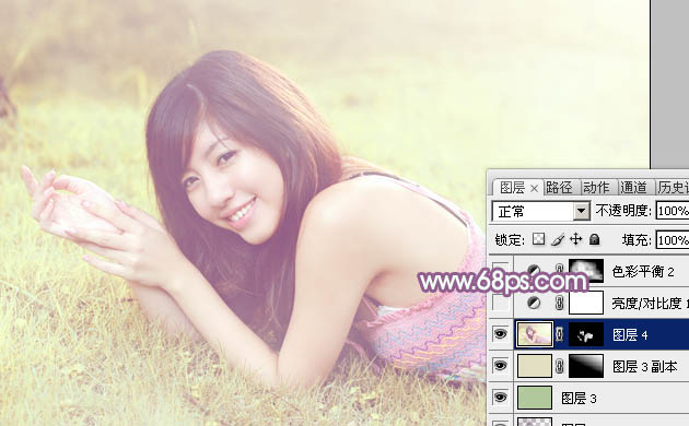Photoshop给绿草上的美女加上唯美的黄紫色(6)