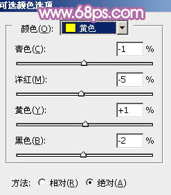 3、创建可选颜色调整图层,对红、黄、黑进行调整,参数设置如图12 - 14,效果如图15。这一步给草地部分增加橙黄色。