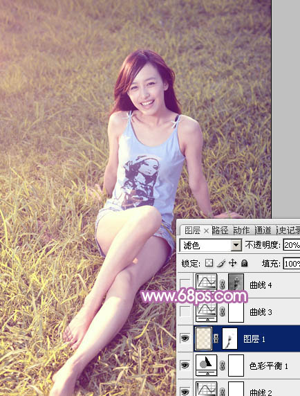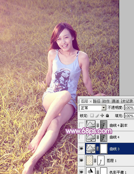 Photoshop给草地上的美女加上柔美的蓝黄色(5)