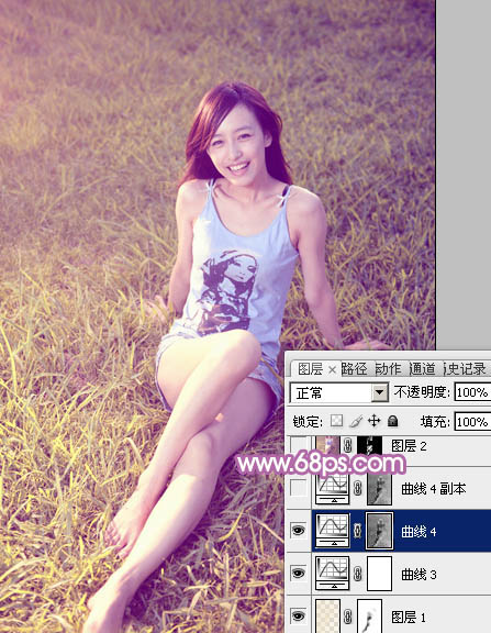 Photoshop给草地上的美女加上柔美的蓝黄色(6)