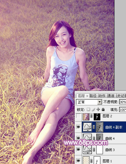 9、按Ctrl + J 把当前曲线调整图层复制一层,不透明度改为:30%,效果如下图。