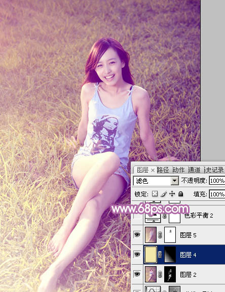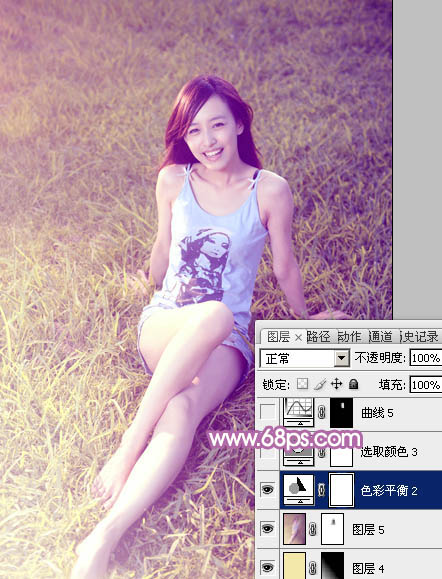 Photoshop给草地上的美女加上柔美的蓝黄色(7)