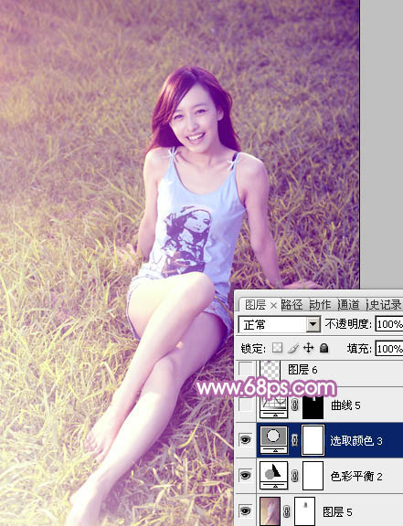 Photoshop给草地上的美女加上柔美的蓝黄色(8)